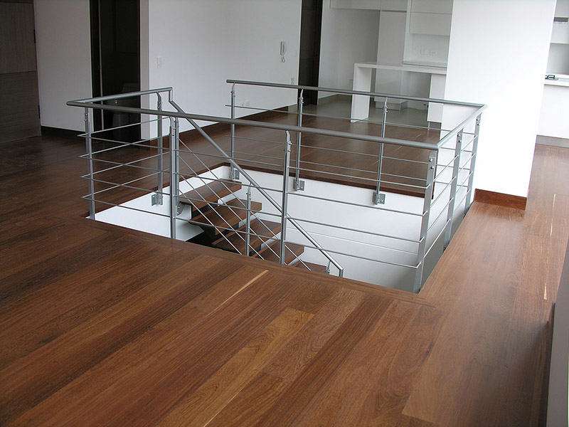 Escaleras en maderas macizas: sapán, granadillo, nazareno, incienso debidamente tratadas y secadas. Los acabados se realizan con lacas de alta resistencia de origen europeo.