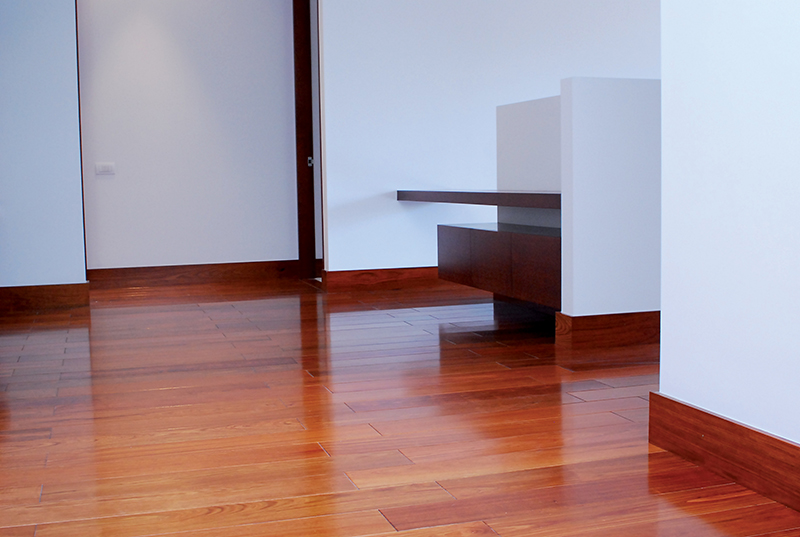 Pisos en maderas macizas: sapán, granadillo, nazareno, incienso debidamente tratadas y secadas. Los acabados se realizan con lacas de alta resistencia de origen europeo.